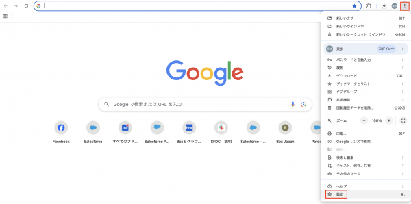 Chromeを開き、右上の「︙」から「設定」をクリック