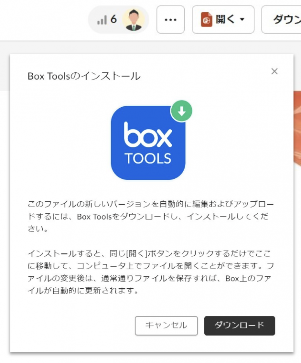 BoxからエクセルやPDFなどのフォルダを開く際には、Box Toolsというアプリを利用して開いております。(導入時に皆様のパソコンにインストールしていただきました。)