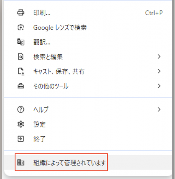 *ブラウザが管理されているかどうかは下記の方法で確認できます。(chromeの場合)