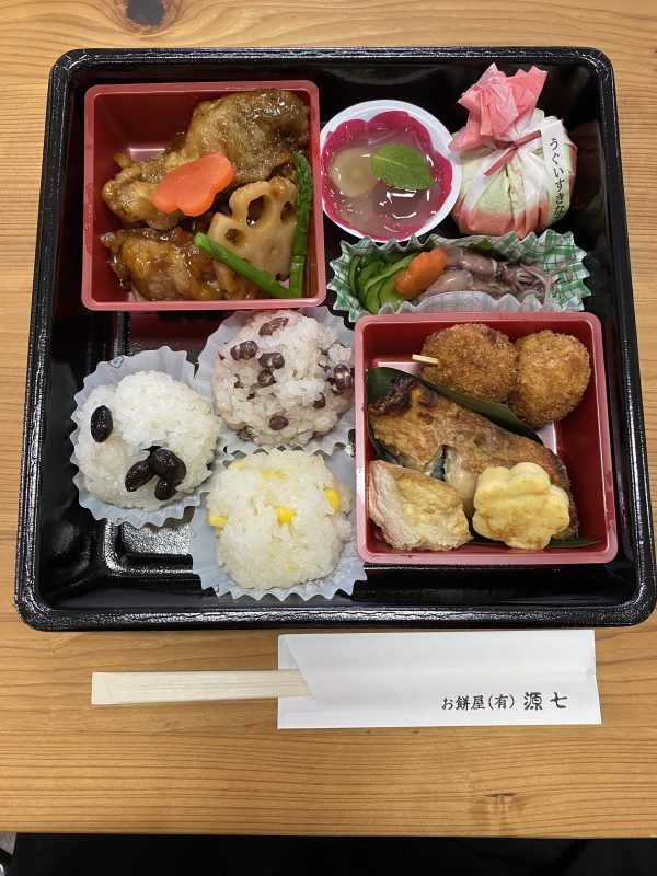 お昼ご飯には、毎年恒例、源七さんのとても美味しいお弁当!